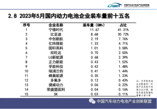 (图:2023年5月国内能源电板企业装车量前十五名)
