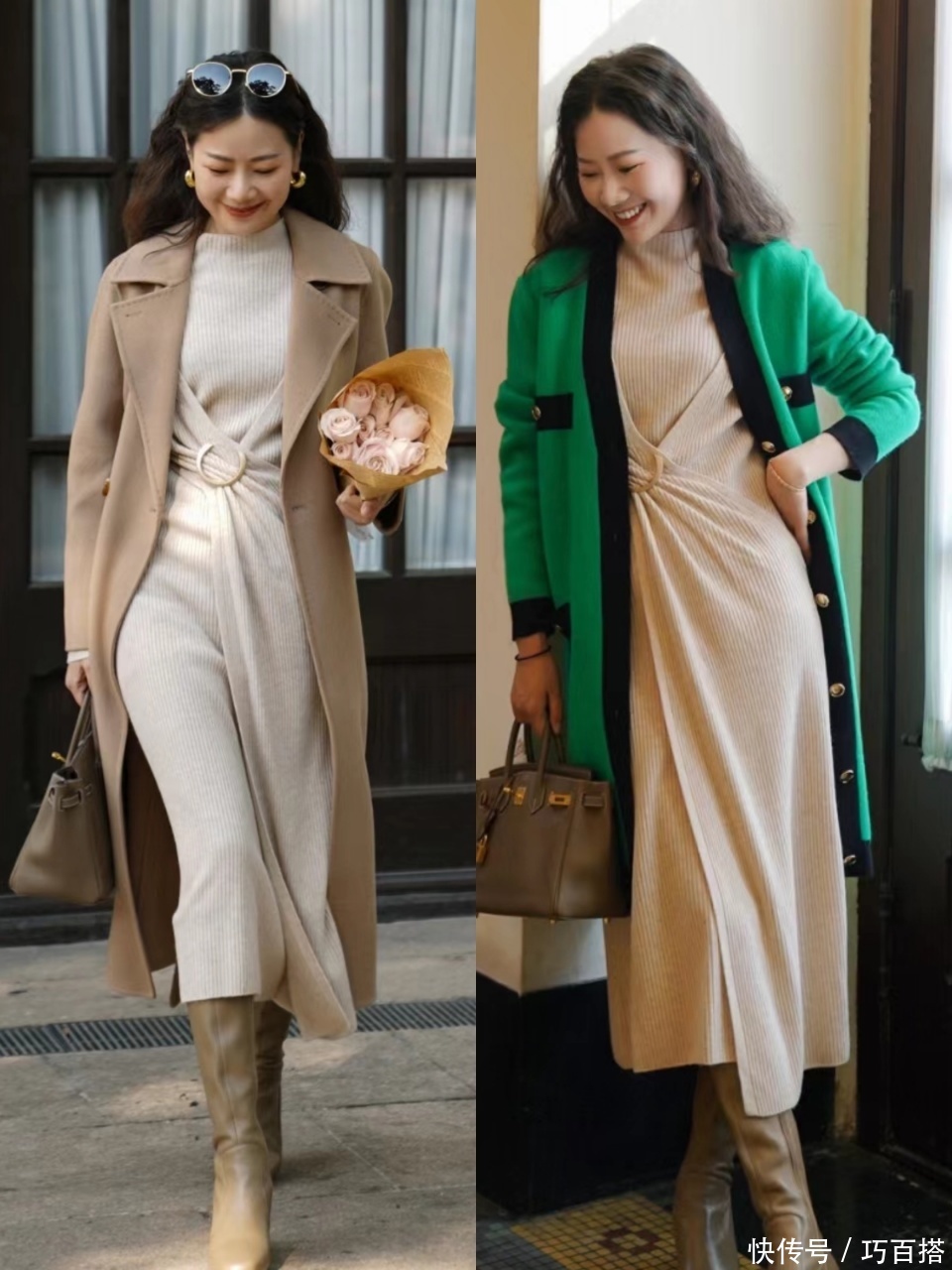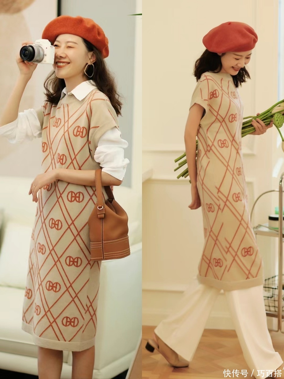 第一类相宜40+女性学习模仿而况不错保证单品上身的斯文性和氛围感的单品是针织裙,针织裙材质不错充分迎合中年女性的年齿,单品上身时而温婉优雅时而轻熟知性,时而风情纵脱时而即兴慵懒。