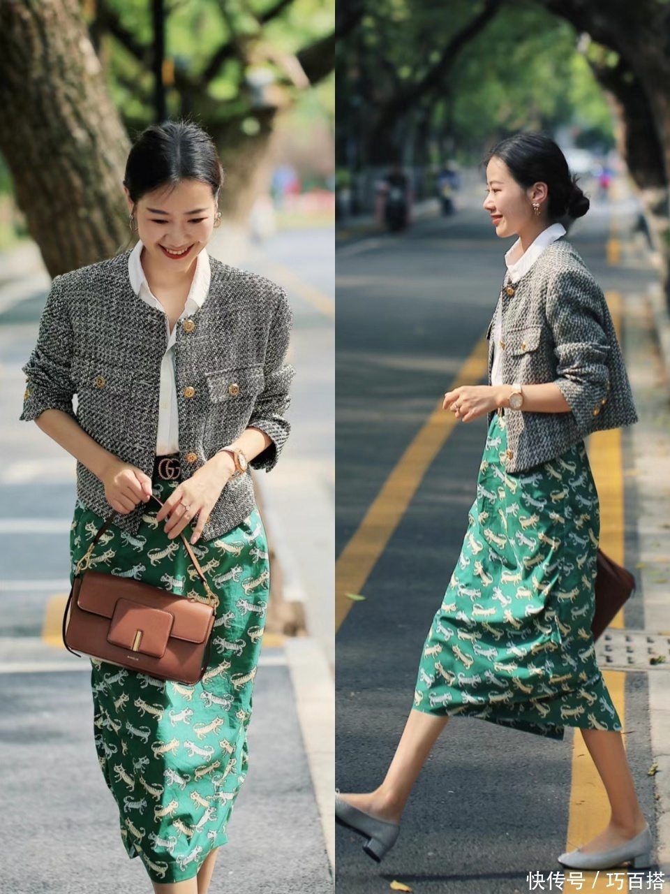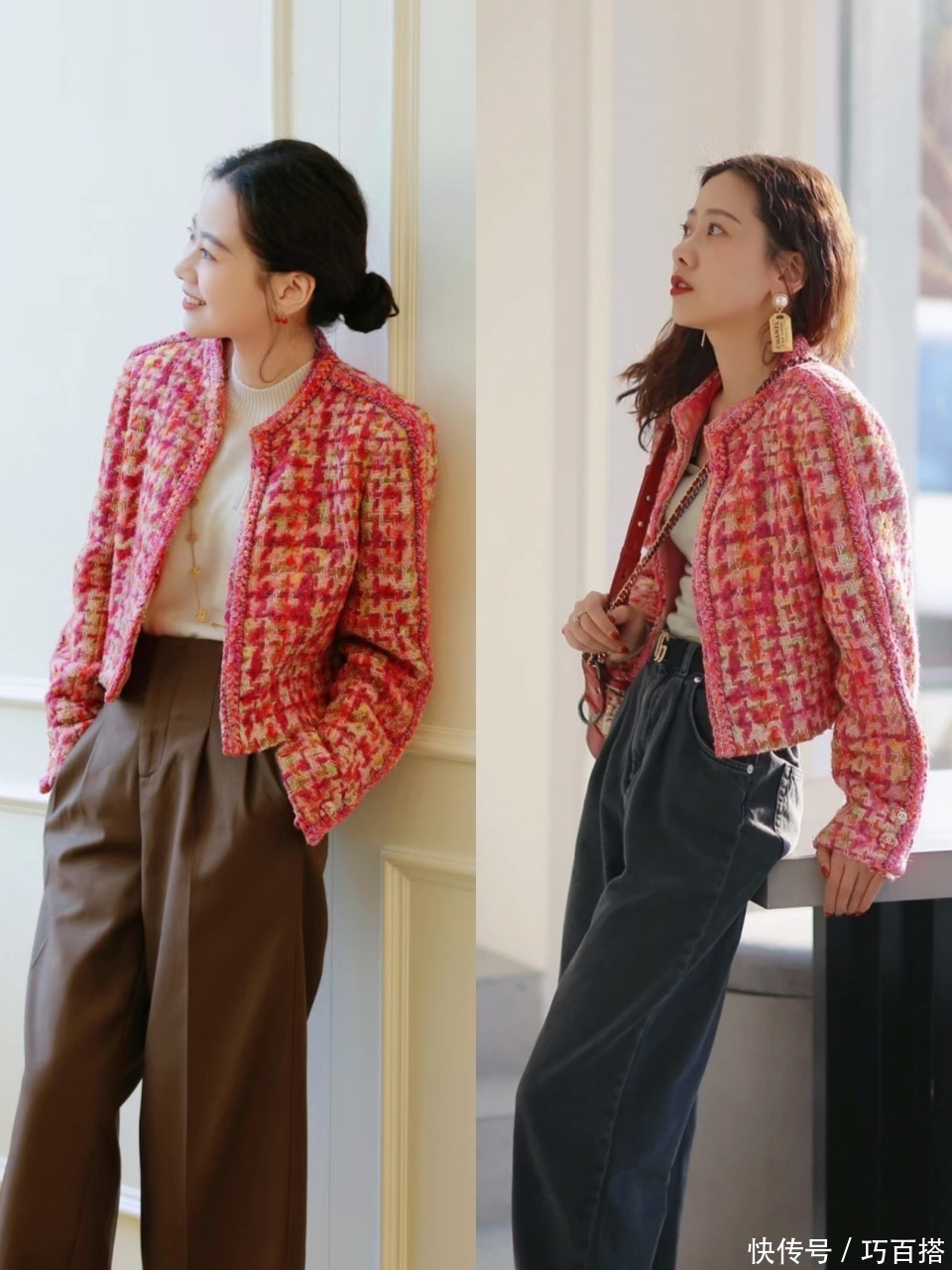 在挑选与小香风外衣搭配的下装时,群众不错选裙装也不错选裤装,裙装和裤装上身效力不尽相易,但举座好意思感是时刻在线的。