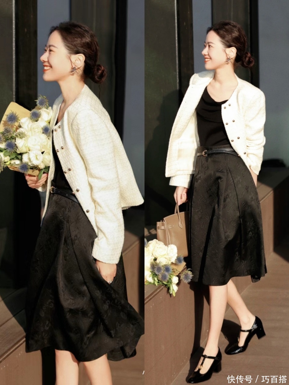 紧身或修身圆领与之搭配,效力也尽头nice,和小香风外衣搭配,效力堪比套装,举座性尽头强,即使莫得任何先锋功底的姐妹学习模仿,也不会合计无从下手。